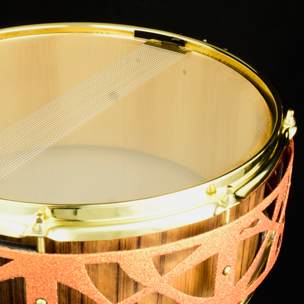 When playing hard, the floating wooden shell gives loads of low end, and the metal outer shell provides the power of a metal snare drum.